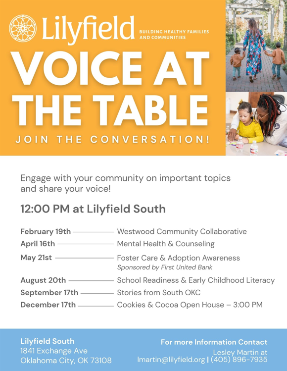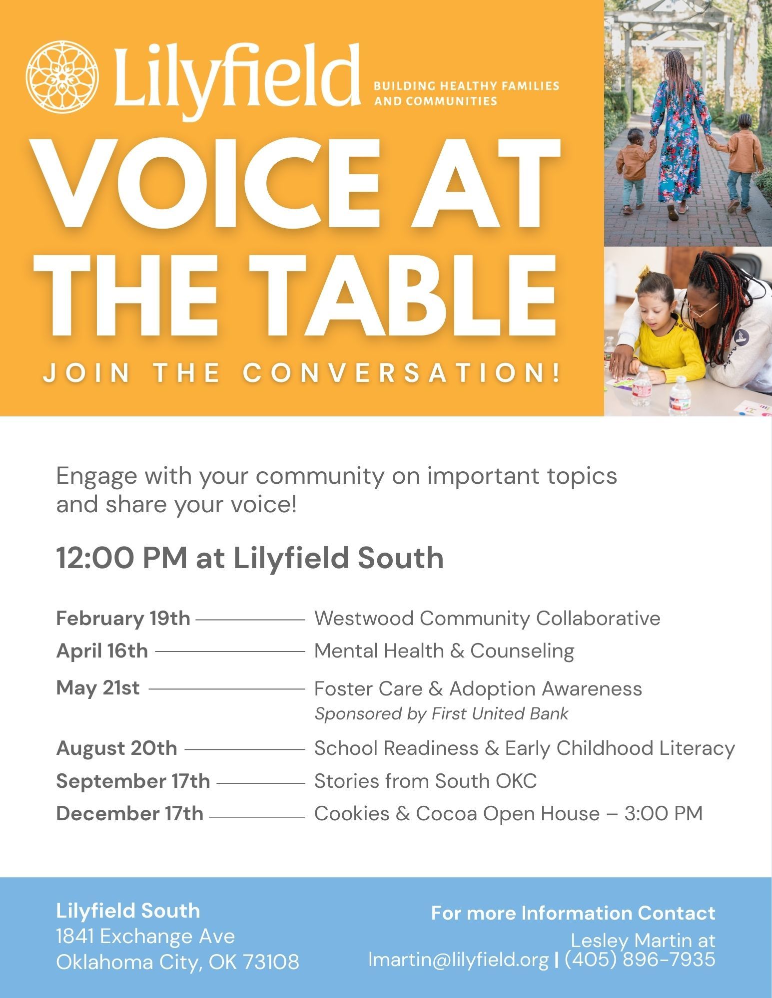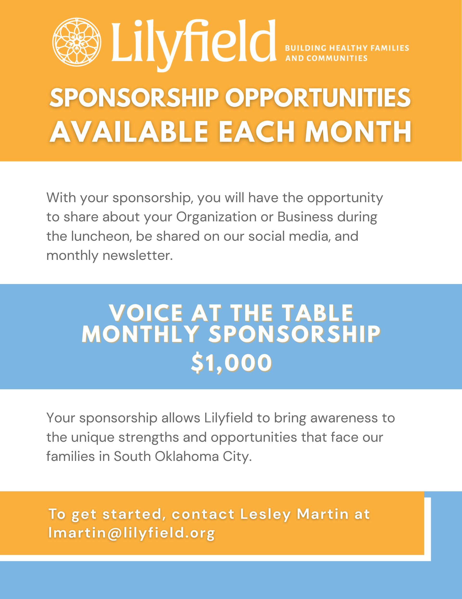 Contact 405-216-5240 or lmartin@lilyfield.org for more information.
